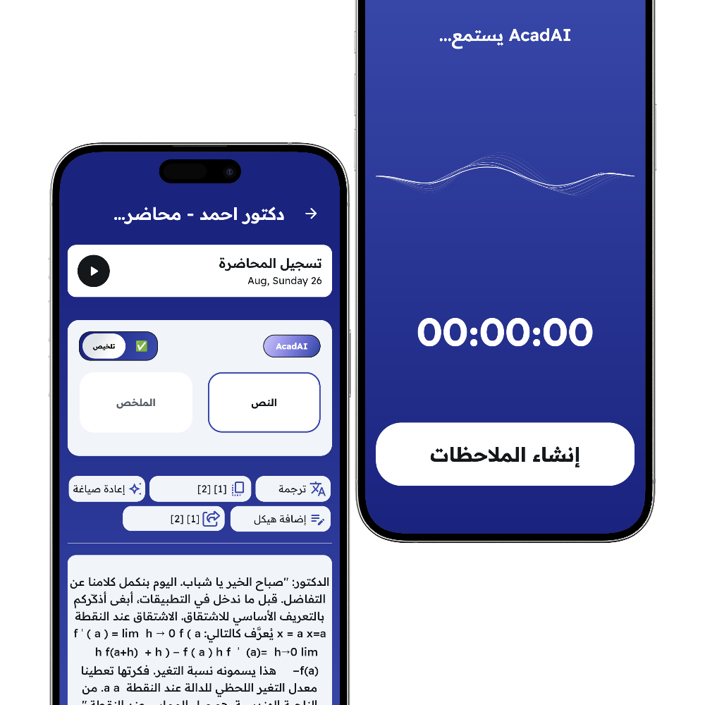 AcadAI يسهّل عليك متابعة محاضراتك حتى لو فاتك شي. بس تسجّل المحاضرة عن طريق التطبيق، وهو يلخّص لك أهم النقاط ويطلع لك الشرح بشكل مرتب يناسب تخصصك وطريقة دراستك. كذا تقدر تراجع بسرعة وتفهم المعلومة بدون ما تضيع وقتك تسمع التسجيل كامل.